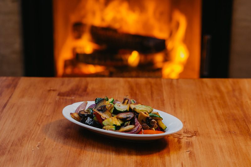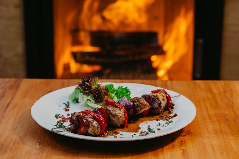 vepřová kotleta, kuřecí prsa s paprikou, pórkem, žampiony a chilli