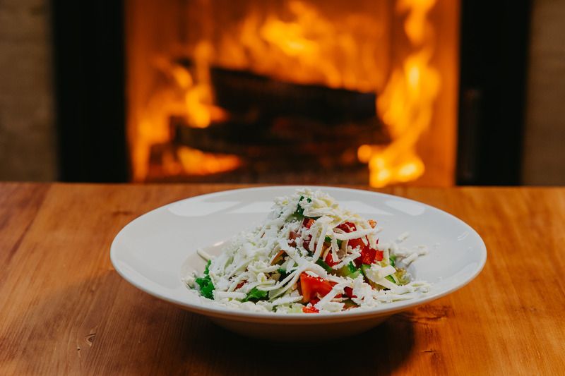 smetanou, špenátem a česnekem, s hoblinkami parmazánu